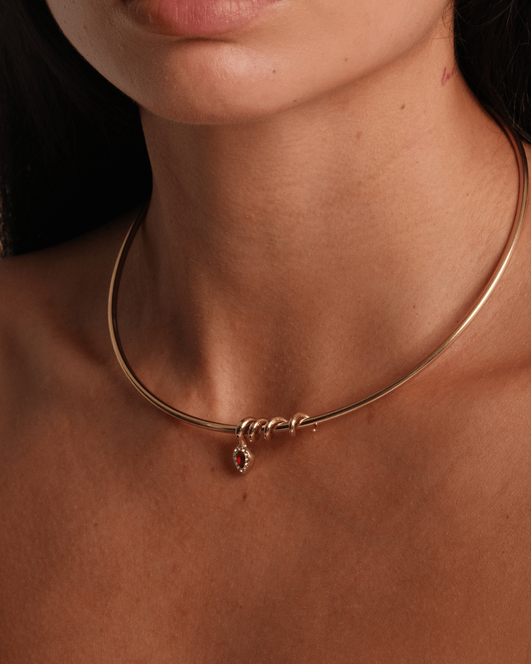 We honestly just wanted to recreate Bella Hadid's Bulgari necklace. We used red carnelian because it was similar to hers.